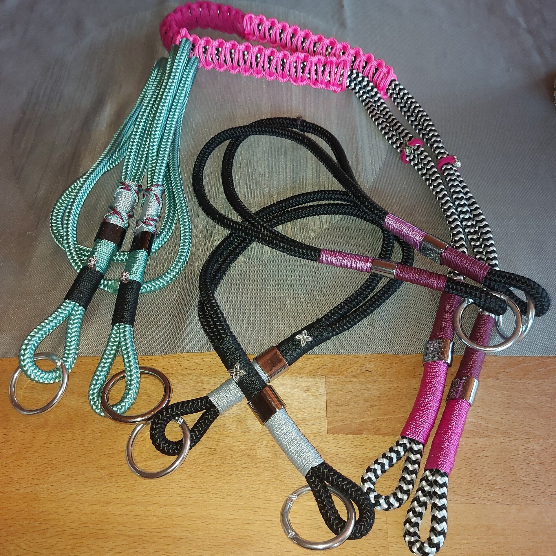 Paracord ist ein strapazierfähiges Segelseil das ich farblich auf die Tasche abstimme. Entweder Ton-in- Ton oder eben Kontrast.