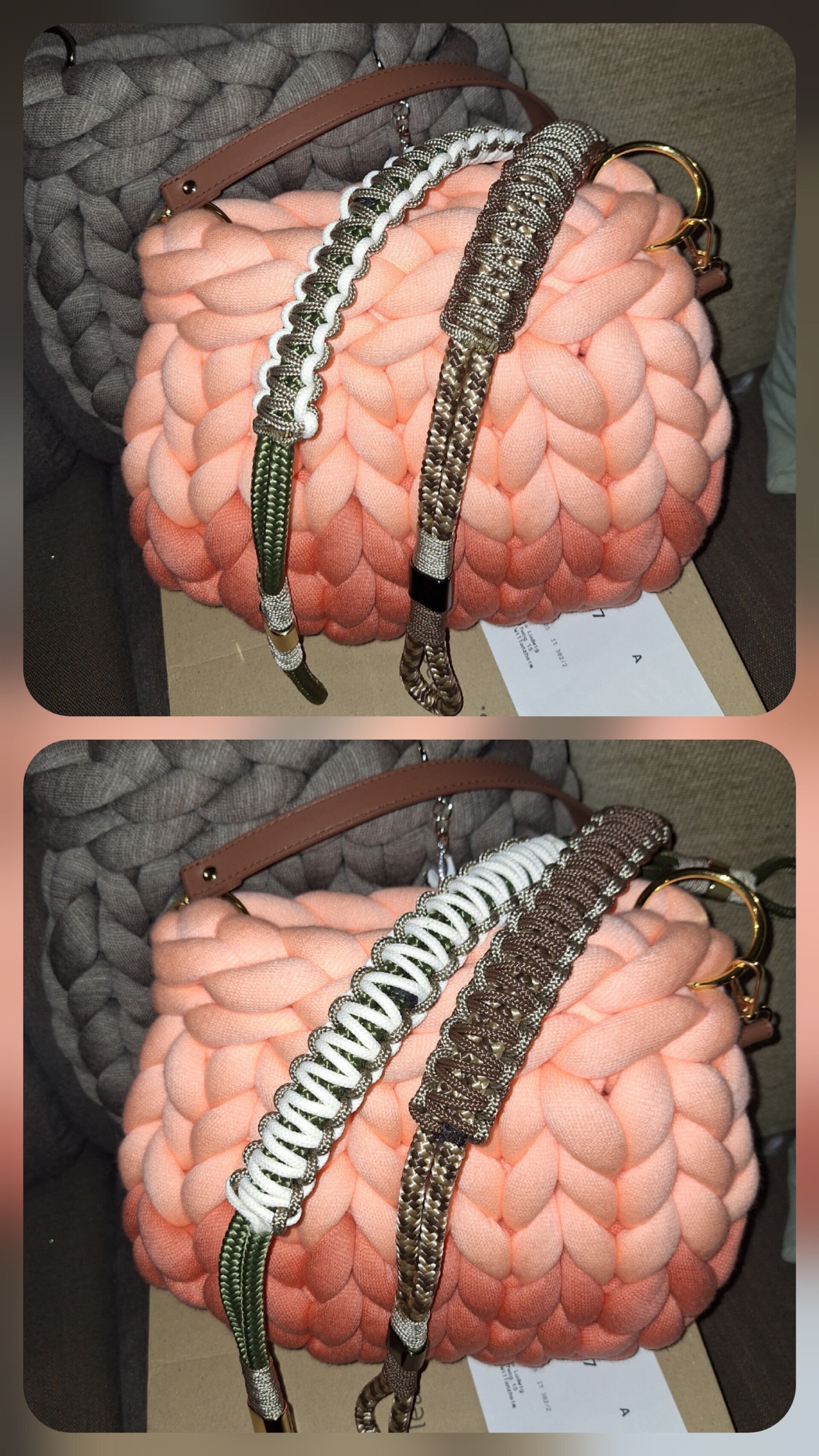 Classicbag L in flamingo,mit Paracordgurt 2farbig,wendbar mit Glitzer Accessoires- Blickfang war gewünscht,denke gelungen ❤️