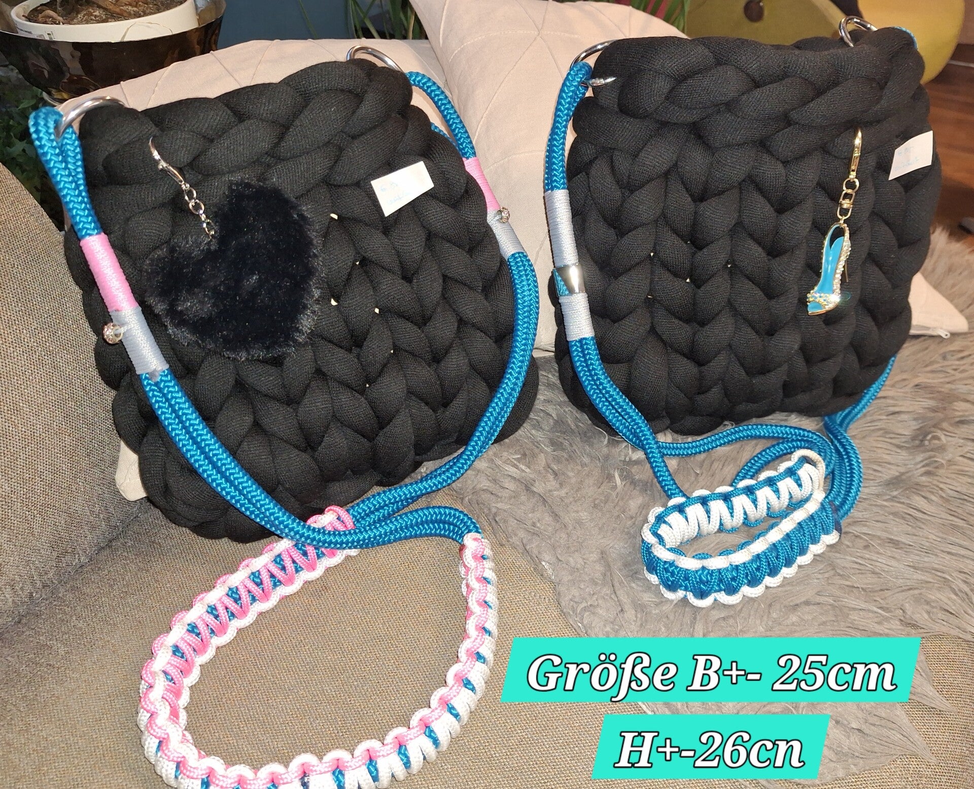 Es gibt sie mit Textilgurt, Kettengurt, Paracordgurt 2farbig, wendbar,...immer corssbody, ca. 120/125 cm